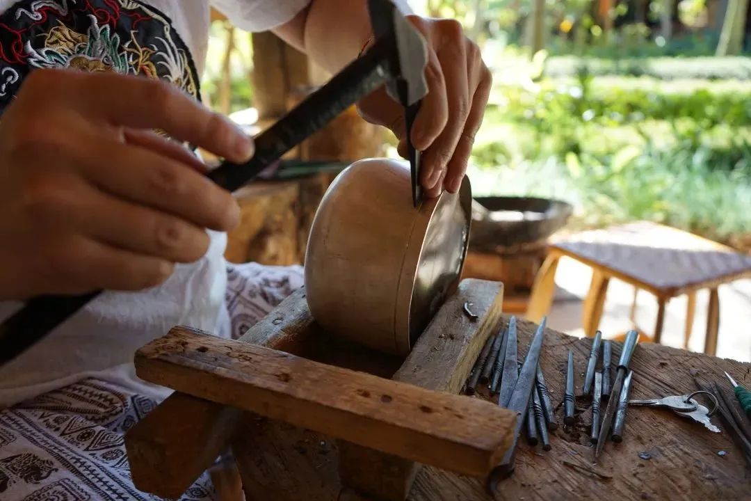曼沙古寨于2009年開始重新規(guī)劃建設,致力打造為西雙版納傣族傳統(tǒng)建筑民居、傣族傳統(tǒng)手工藝的非物質文化遺產(chǎn)傳承保護區(qū),村寨中設有葫蘆絲制作技藝傳習館、銀器制作傳習館、傣族制陶傳習館、傣族織錦傳習館,讓游客到此后便可以開啟一場非遺之旅,不僅可以了解傣陶、傣錦、傣銀制作的歷史文化,還能在非遺傳承人手把手的指導下體驗非遺制作的魅力。
