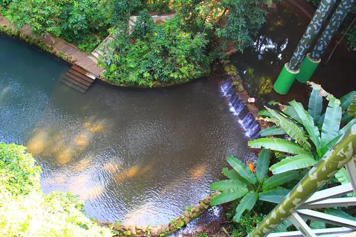泳池的水質清澈透明,與周圍的綠樹相映成趣