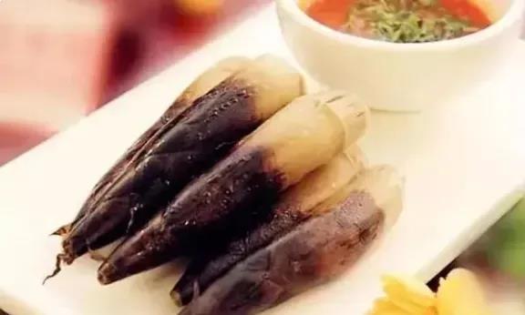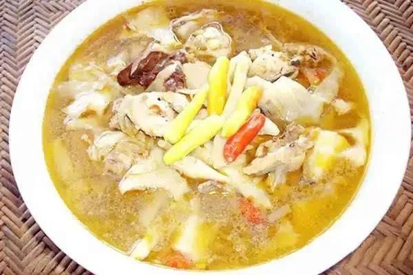 酸筍是用新鮮的竹筍腌制而成,而雞一般都用少數(shù)民族小土雞,酸筍煮雞味略酸,不油膩,用特質(zhì)的酸筍配上鮮嫩的雞肉熬成湯,再加上傣家特有的香料,肉嫩而甜。