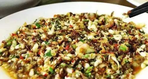每年三、四月是掏酸螞蟻蛋的好季節(jié)。將掏出的酸螞蟻蛋清除成形螞蟻和其他雜質(zhì)后洗凈。先用豬油把辣椒、大蒜、鹽巴等配料炒黃后加水,待水燒開,倒入酸螞蟻,煮上20分鐘,盛入碗中,即可就餐。其味道鮮辣可口,并有特殊的酸甜味,含有豐富的蛋白質(zhì),是基諾人喜愛的佳肴。