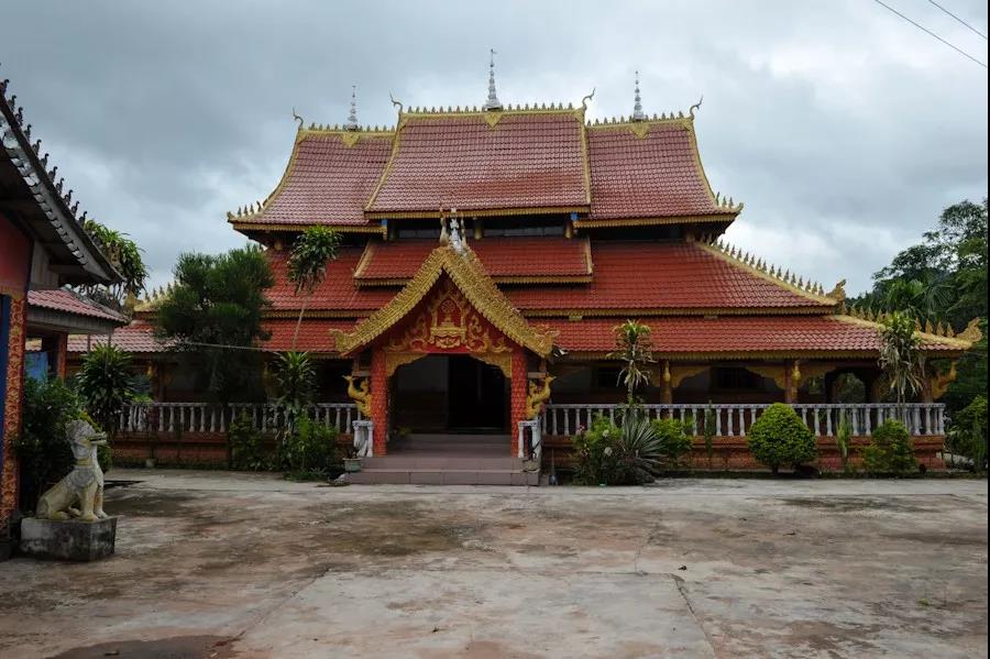 曼旦村有兩座佛寺,新建成的佛寺用黃色琉璃瓦蓋成,是和尚們住宿的地方;緊挨旁邊的是一座莊嚴肅穆的舊佛寺,這里是和尚們誦經念佛的地方。傣族人信奉由印度傳入的小乘佛教,小乘佛教是佛教的一個支派,即“南傳上座部佛教”,經由緬甸、泰國傳入西雙版納傣族地區,至今已有一千多年歷史。
