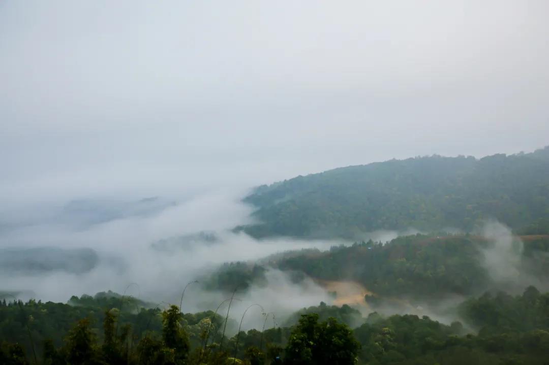 有時,太陽藏在云霧中不愿現身時,整個古茶園被云海包圍,站上瞭望臺,可以看到整個山川云海。等待著云海散開,太陽升起,郁郁蔥蔥、蒼翠挺拔的古茶樹一點一點顯露出來。