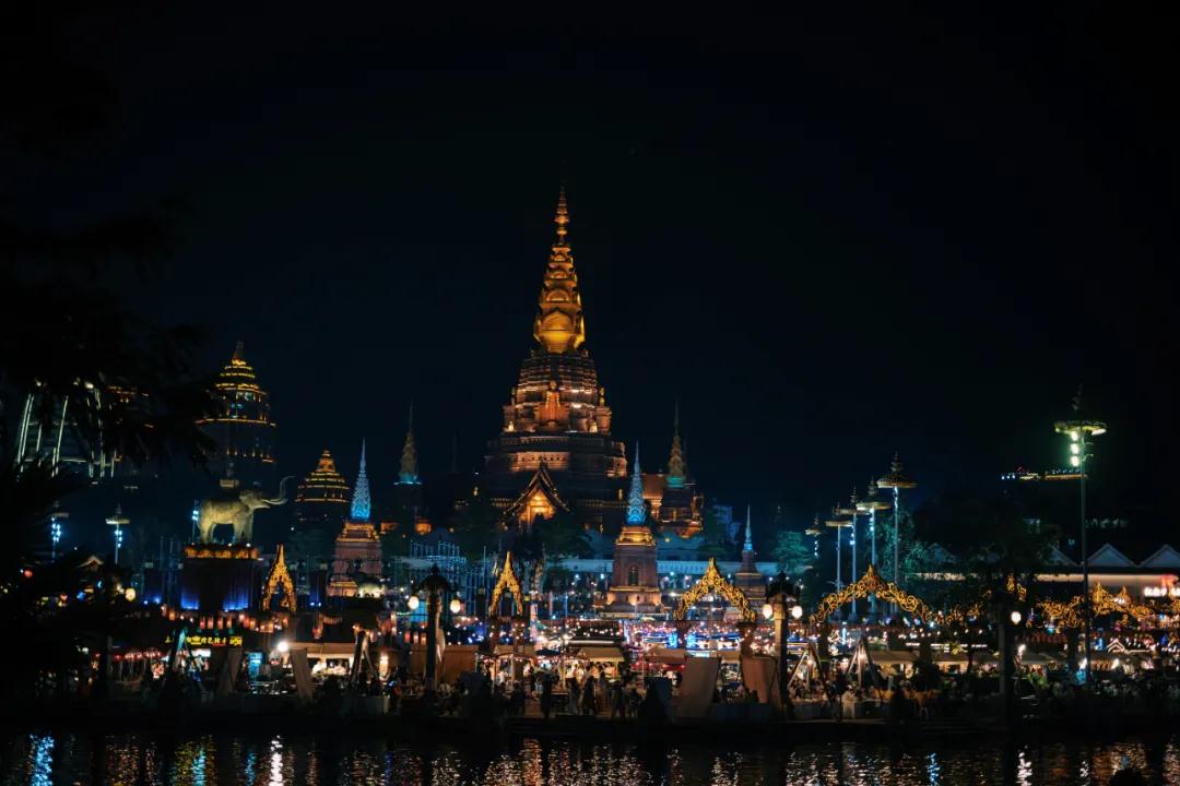 我去夜市的時候,真的是成群結(jié)隊的傣裝、泰裝裝扮的小姐姐在大金塔和星光夜市這里拍照。少說幾百個,肯定不止的。