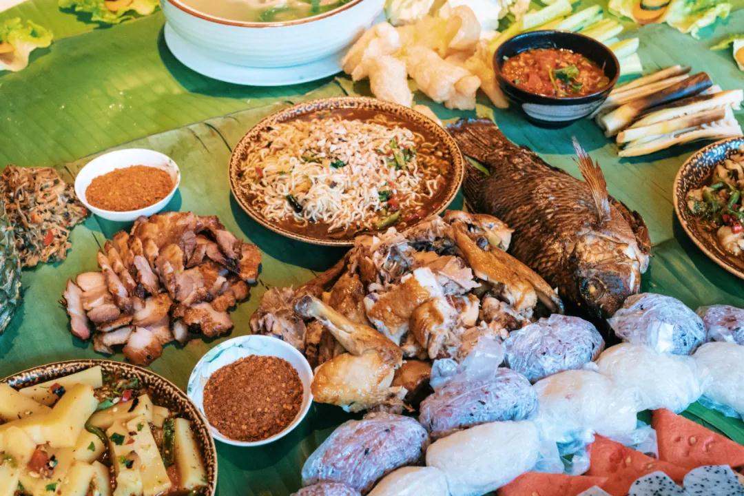 傣味主要有傣家燒烤、傣家下午茶、孔雀宴、舂(chōng)系列、香茅草烤魚、檸檬烤魚等。