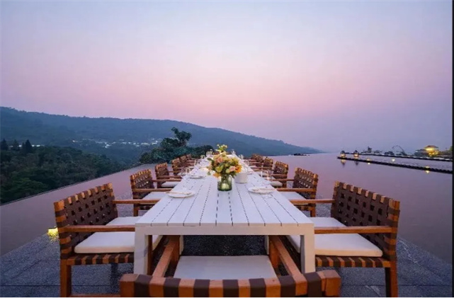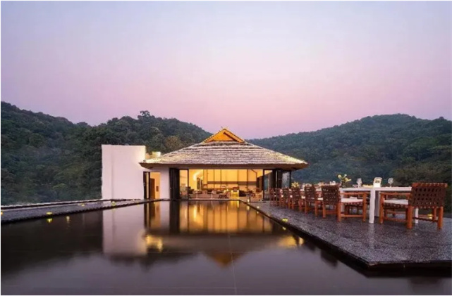 5層高的白色小屋背山面溪谷,綠蔭環繞、遺世獨立。一進大堂就是匠廬一貫的文藝調性,客房用白色打造簡約風。木質的溫暖、褐色的清麗與室外綠意相映成趣。每間房都有不同的賞景方式,露臺的無邊水池能販賣日出日落和滿天星辰。