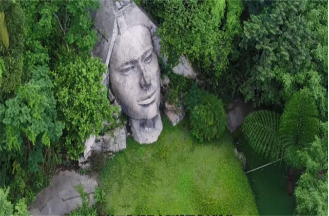 距離景洪市23公里的熱帶雨林中,有全國唯一一個以基諾文化為主題的旅游景區——基諾山寨。山寨里有一個巨大石像,叫做阿嫫腰北女神像,阿嫫腰北在基諾族語中意為創造大地的母親。在基諾族的傳統觀念里,天地萬物都是由阿嫫腰北創造的,包括基諾族的祖先媽黑和媽妞。