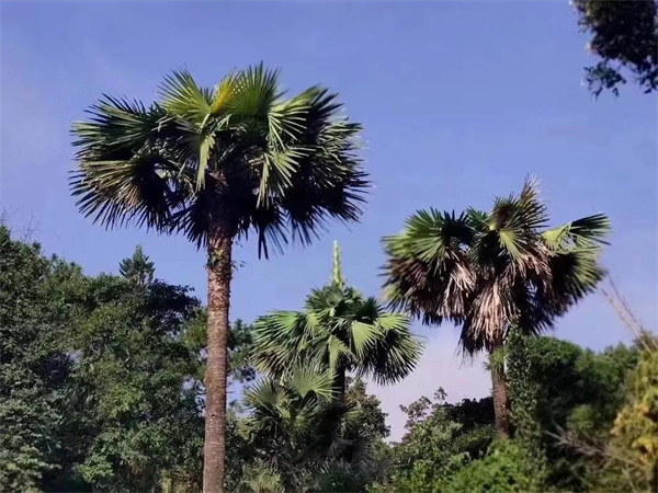 糖棕的羽狀葉片常年油綠,巨大而稠密,猶如天然的華蓋,遮擋住熱帶熾熱的陽(yáng)光,又好似一支支綠色的大綠傘,給人們一片涼爽的綠蔭,可作庭院成片栽種。