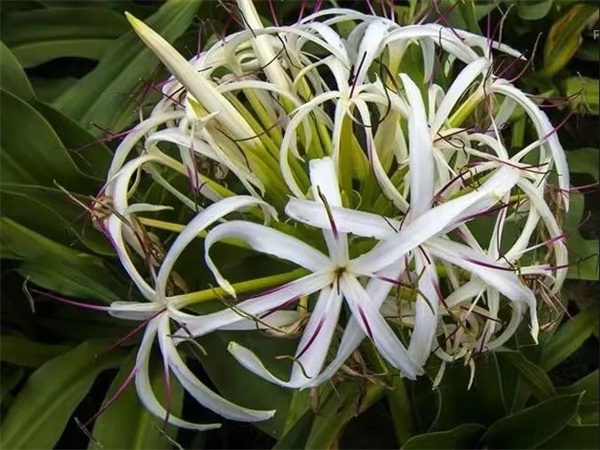 文殊蘭的名稱可能使人誤會(huì)此品種為一種蘭科植物,但實(shí)際上此品種為石蒜科多年生粗壯草本植物,花期6-8月,傍晚時(shí)發(fā)出芳香。