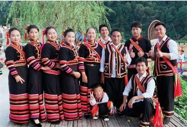 基諾族服飾簡單古樸,他們喜歡穿自織的帶有藍、紅、黑色彩條的土布衣服。