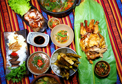 在西雙版納連水果也可以做涼拌。橄欖、芒果、菠蘿、木瓜等水果去皮切塊,放上耗油、醬油、小米椒、干辣椒等配料之后攪拌均勻,就得到一份爽口的涼拌了。酸爽的配料與水果的甜在口腔里混合出了絕妙的體驗,涼拌雖入腹,但是香味還存留在唇齒之間,讓人久久回味。