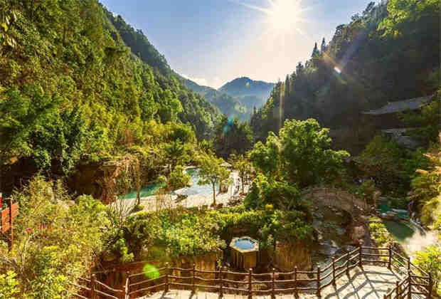 浴谷溫泉以硫磺泉、碳酸泉和氣泉為主,均取自熱海景區(qū)不同景點(diǎn)和泉質(zhì)的溫泉水,營(yíng)造出“一池、一泉、一景”的溫泉泡湯氛圍。浴谷溫泉有7個(gè)中藥池、5個(gè)特色池、4個(gè)碳酸原湯、6個(gè)硫磺原湯、7個(gè)功能各異的地?zé)嵫舴拷M成。泉水中主要含有硫酸根離子、可溶性硅、鈣、鎂、鈉、重碳酸鹽等多種礦物質(zhì),具有美容養(yǎng)顏的功效,特別對(duì)運(yùn)動(dòng)、神經(jīng)、消化、呼吸、心血管疾病有改善作用,對(duì)解除旅途疲勞效、失眠效果明顯。